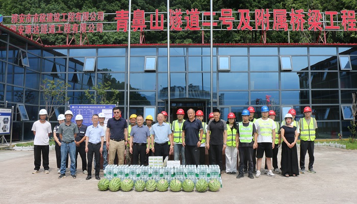 為切實做好高溫天氣下一線職工的勞動保護和防暑降溫工作,連日來,城投公司黨委書記、董事長羅倫全,黨委副書記、董事、總經(jīng)理范勇分別帶隊,深入青鼻山隧道二號及附屬橋梁工程、雅州印項目施工現(xiàn)場,親切慰問奮戰(zhàn)在酷暑中的一線建設(shè)者。公司黨委委員、副總經(jīng)理茍剛,黨委委員、副總經(jīng)理瞿橫空陪同慰問。