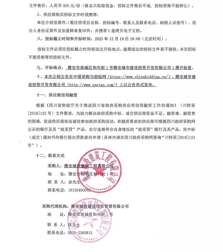 雅州壹號院項目架管周轉(zhuǎn)材料租賃服務(wù)采購項目投標邀請公告