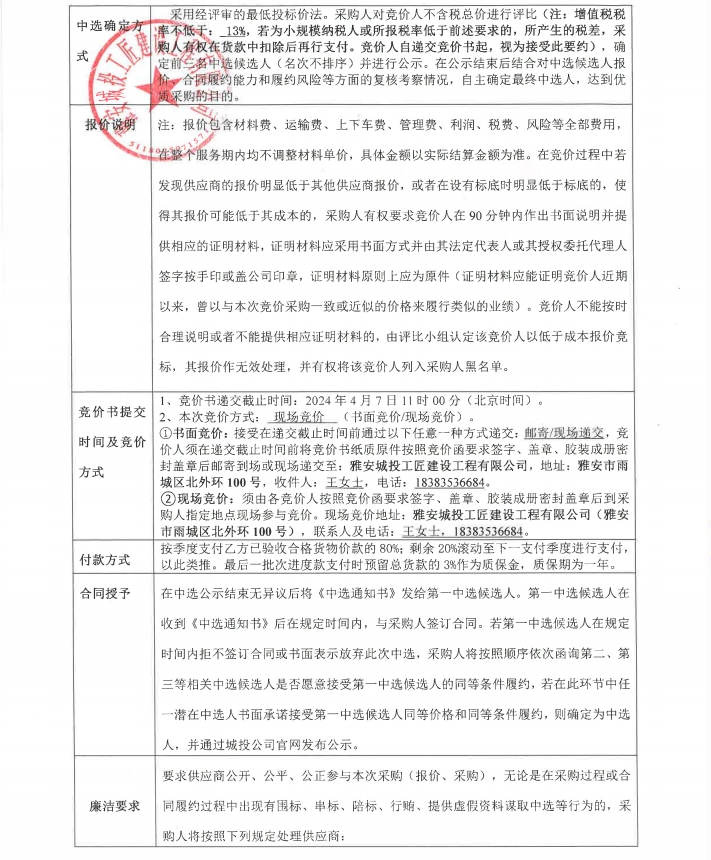 雅安市大興生態(tài)旅游建設(shè)項目吊頂?shù)炔牧喜少彛ǖ谌危└們r公告